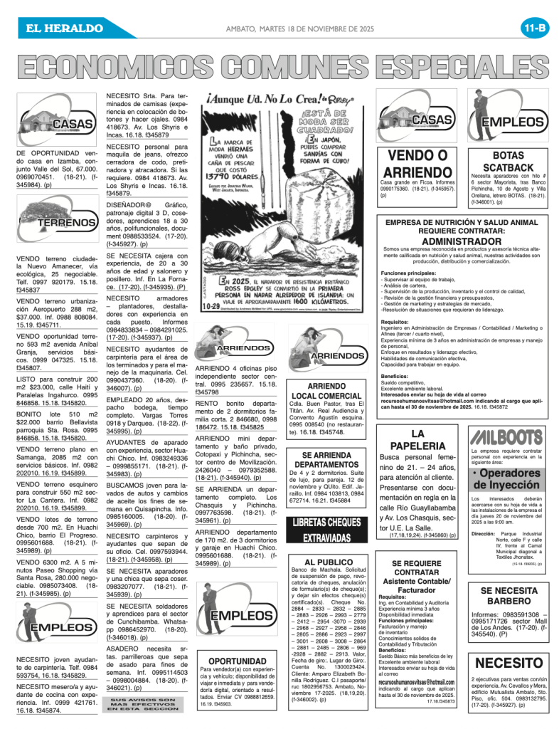 CLASIFICADOS 18 DE NOVIEMBRE DE 2025