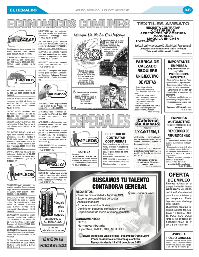 CLASIFICADOS 19 DE OCTUBRE DE 2025
