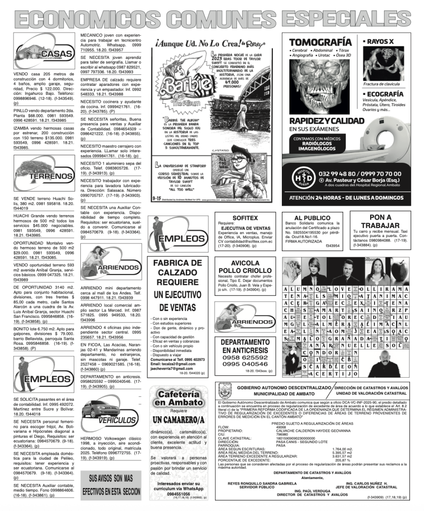 CLASIFICADOS 20 DE OCTUBRE DE 2025