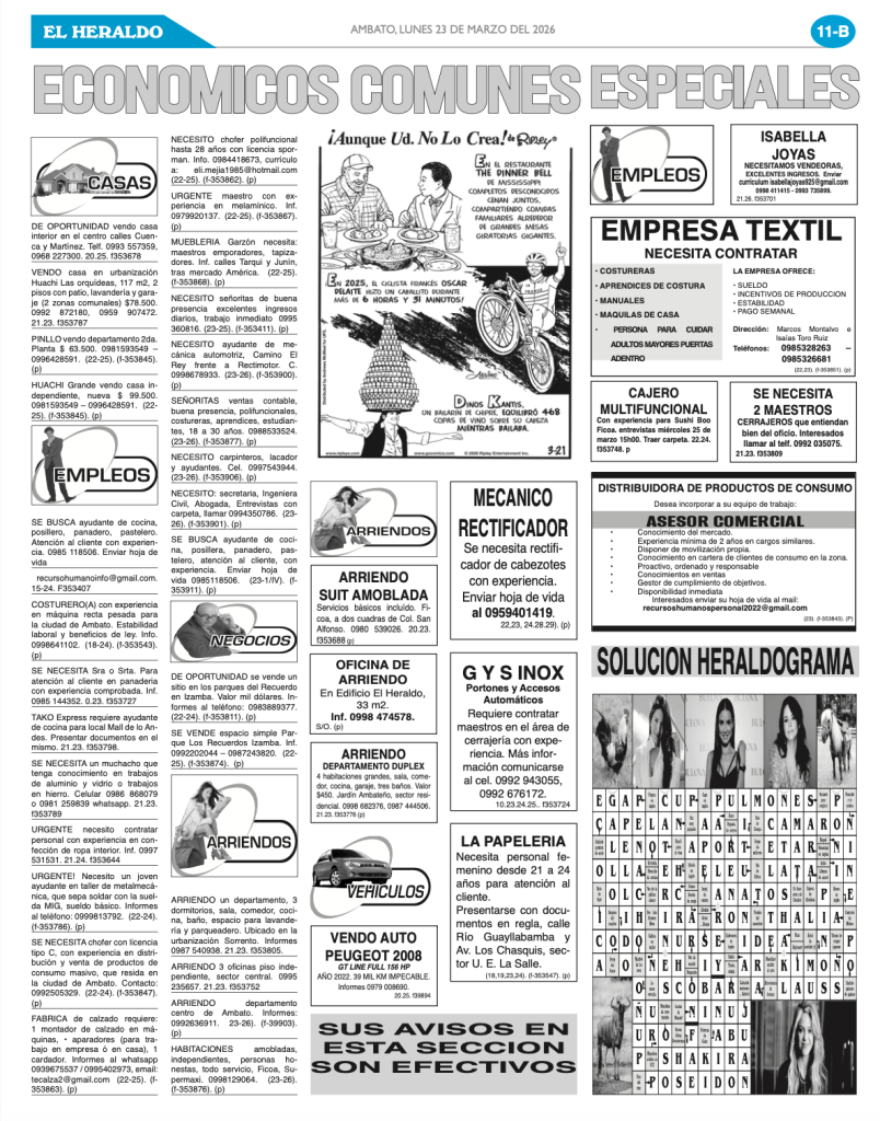 CLASIFICADOS 23 DE MARZO DE 2026