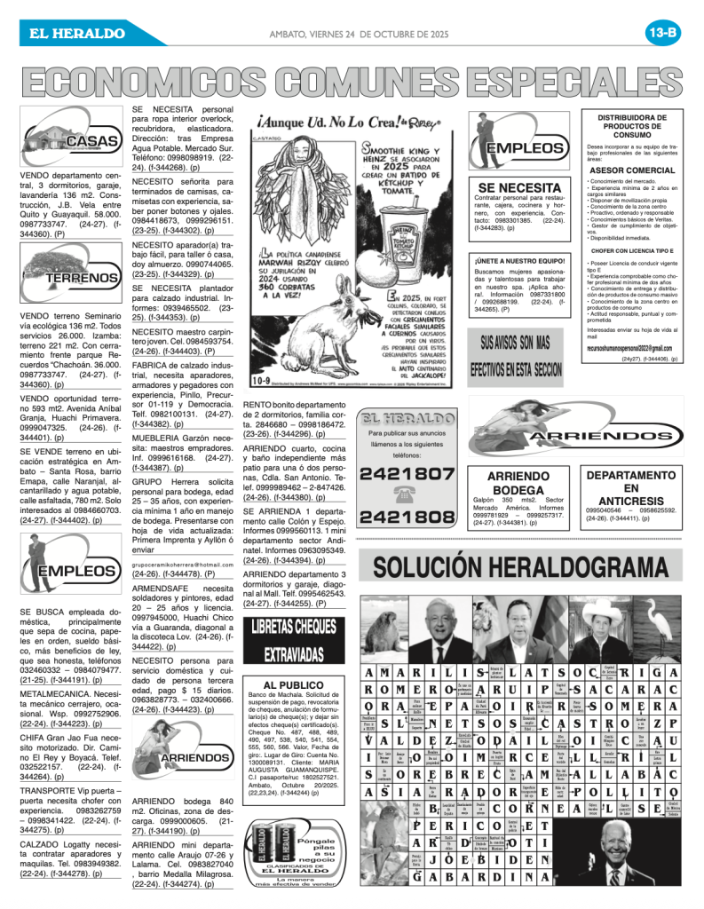 CLASIFICADOS 24 DE OCTUBRE DE 2025
