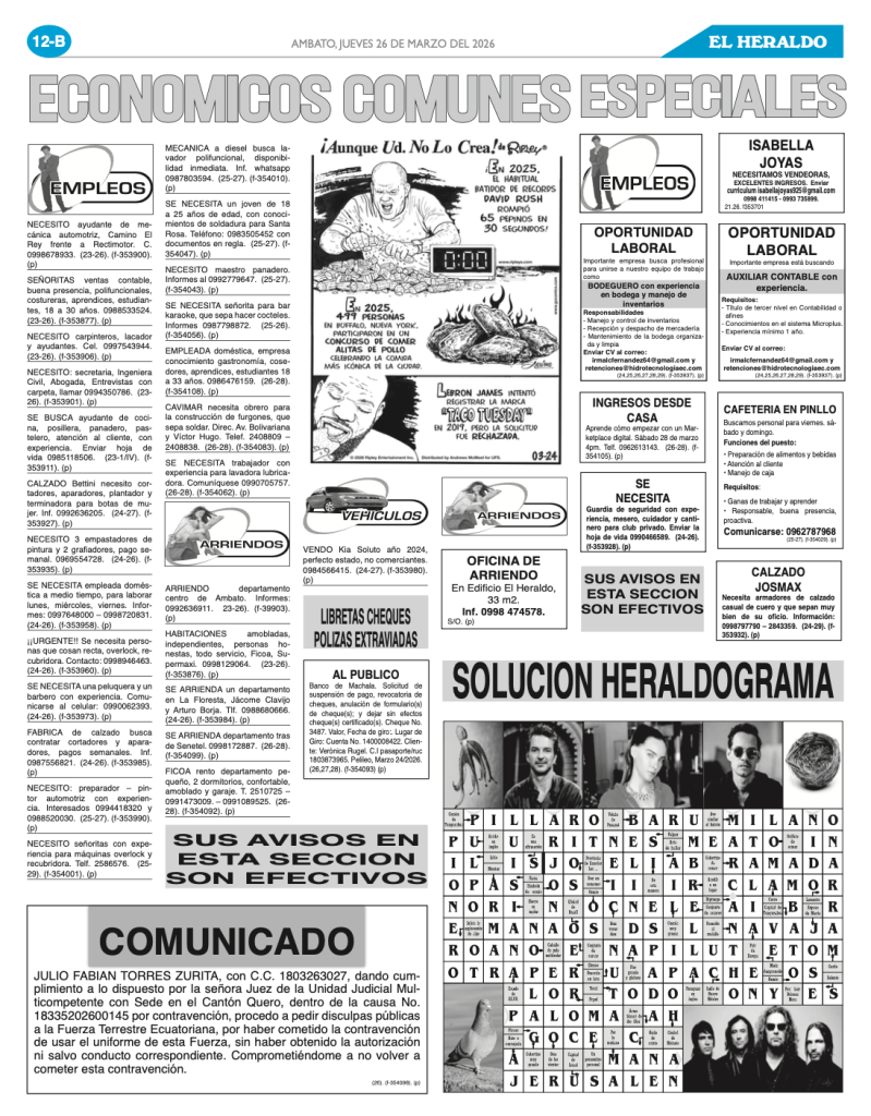 PARTES MORTUORIOS Y OBITUARIOS 26 DE MARZO DE 2026