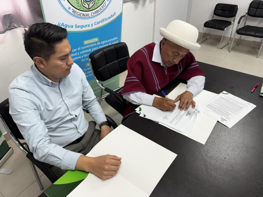 Bajo este contexto suscribió un convenio con la Junta de Agua y Saneamiento Regional Chibuleo para el cobro de la tasa de recolección de basura y aseo público de Ambato. Este acuerdo permitirá fortalecer los mecanismos de recaudación, optimizar procesos y acercar el servicio a la colectividad trabajando de manera articulada con instituciones aliadas.