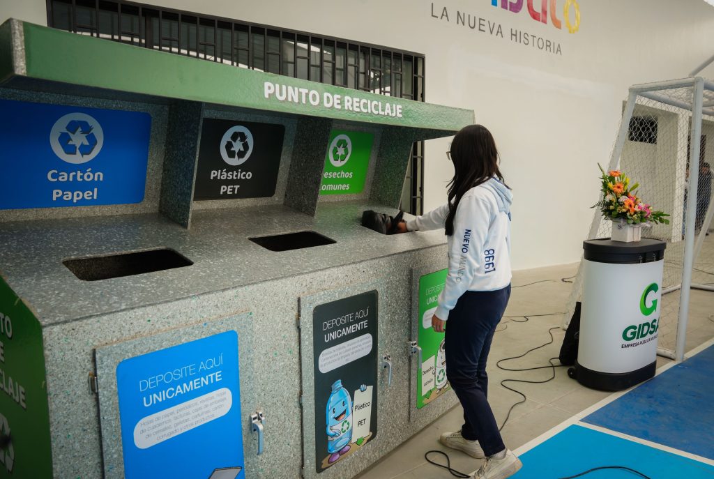 El reciclaje continúa posicionándose como una herramienta clave para el desarrollo sostenible de Ambato. Con el objetivo de reducir la cantidad de residuos que llegan a disposición final, mejorar la limpieza urbana y fortalecer la cultura ambiental, la Municipalidad de Ambato, a través de la Empresa Pública Municipal de Gestión Integral de Desechos Sólidos (EPM-GIDSA), entregó puntos de reciclaje a seis unidades educativas del cantón.