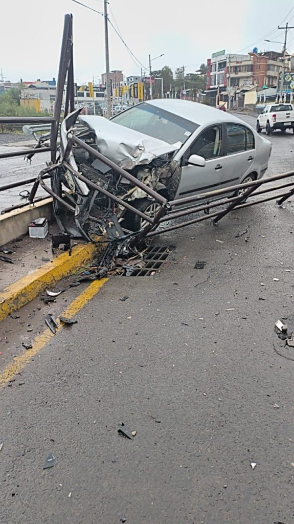 El automotor, que circulaba por la transitada Avenida Indoamérica, se estrelló frontalmente contra las barandas de seguridad de la vía con tal violencia que la estructura metálica atravesó gran parte del capó y el motor. Según reportes preliminares, el vehículo habría impactado contra otro automotor de color rojo antes de terminar empotrado contra las seguridades; sin embargo, las circunstancias exactas siguen bajo investigación.