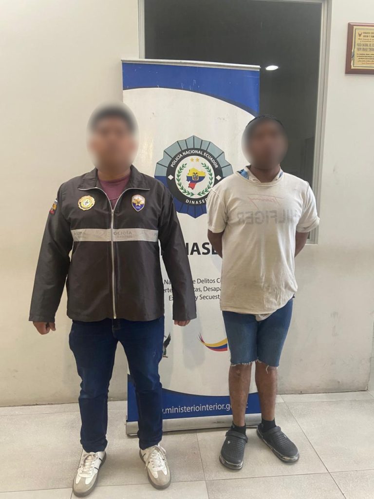Aclaró que el presunto implicado conocido como Deyner M., de 23 años de edad y de nacionalidad colombiana, fue sorprendido en el sector de Huachi Chico.