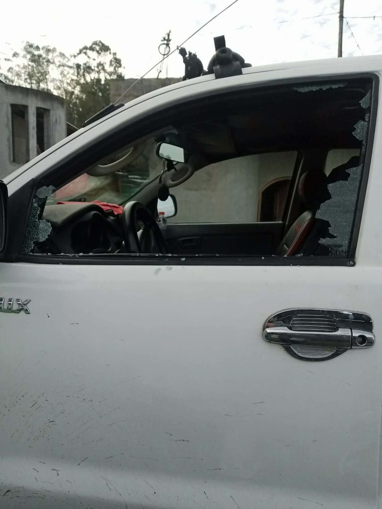 Durante su escape, los antisociales causaron daños materiales, dejando rota una de las ventanas de una camioneta que se encontraba en el sitio.