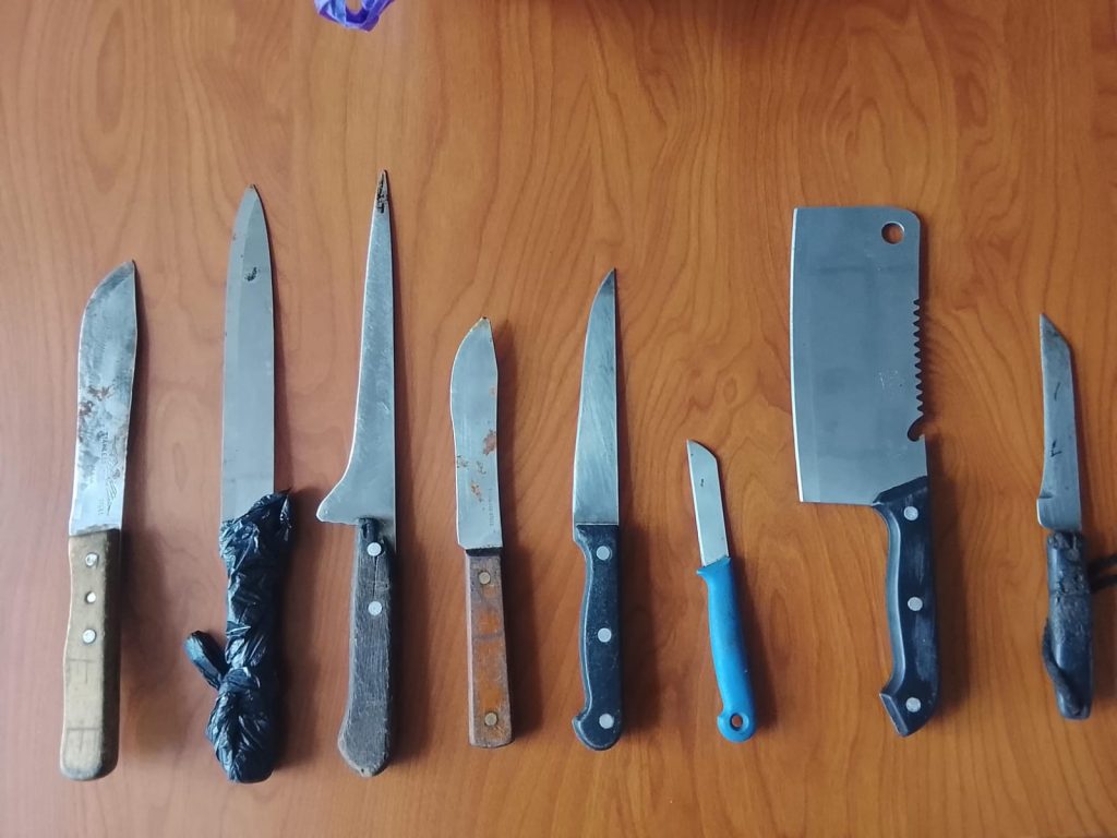 Roberto Gavilanes, comandante subrogante de la Subzona Tungurahua, en rueda de prensa, informó que las acciones de inteligencia permitieron la incautación de ocho armas blancas y dos armas de fuego, retirando de las calles herramientas letales utilizadas en delitos de oportunidad.