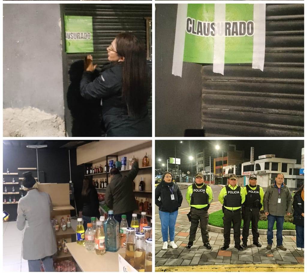 Como resultado de las intervenciones, se procedió a la clausura de un local comercial correspondiente a la categoría licorera, ubicado en las calles Carlos Rubira Infante y Rudecindo Inga Vélez.