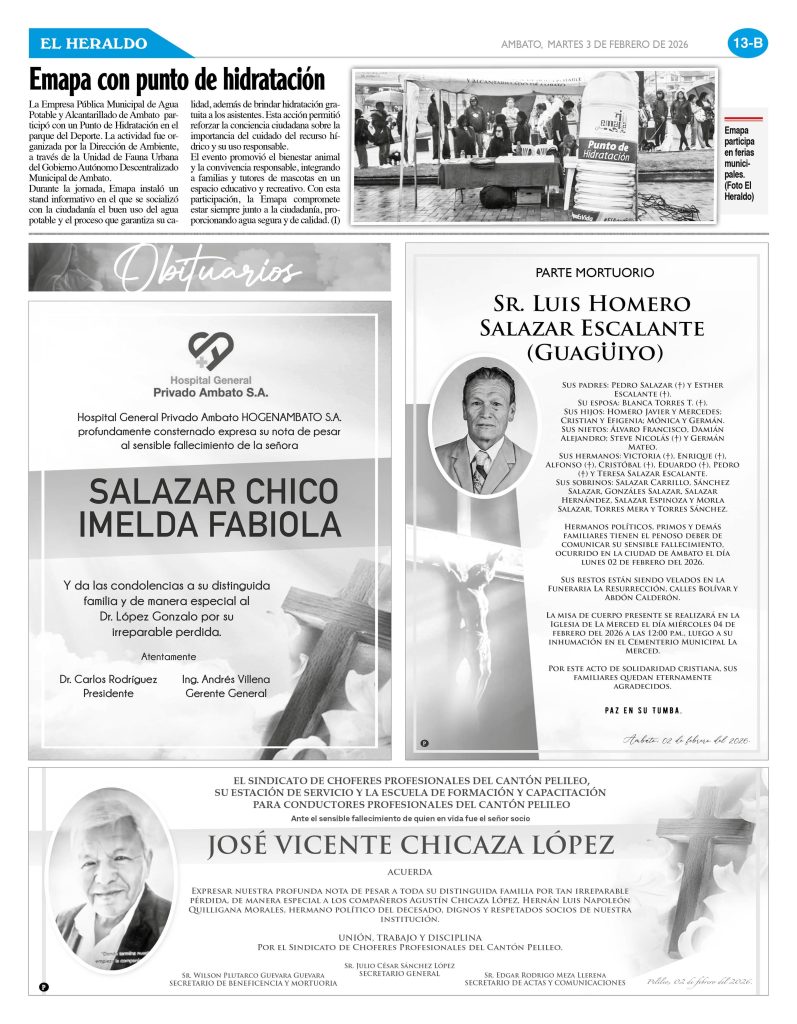 PARTES MORTUORIOS Y OBITUARIOS 03 DE FEBRERO DE 2026 3 febrero, 20263 febrero, 2026 El Heraldo Partes Mortuorios