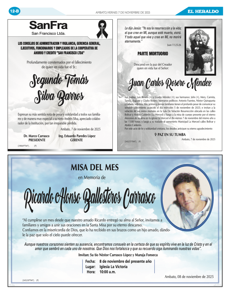 PARTES MORTUORIOS Y OBITUARIOS 07 DE NOVIEMBRE DE 2025 7 noviembre, 20257 noviembre, 2025 El Heraldo Partes Mortuorios