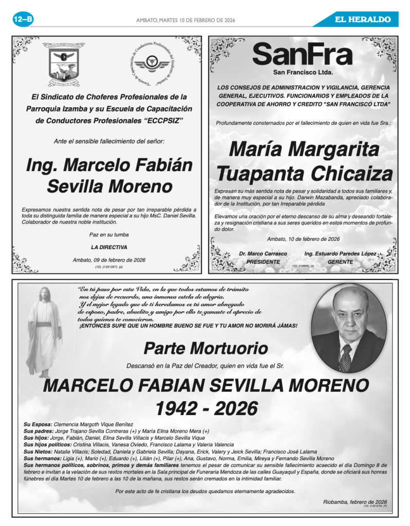 PARTES MORTUORIOS Y OBITUARIOS 10 DE FEBRERO DE 2026 10 febrero, 202610 febrero, 2026 El Heraldo Partes Mortuorios