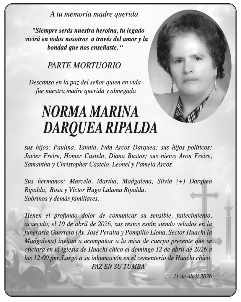PARTES MORTUORIOS Y OBITUARIOS 11 DE ABRIL DE 2026 11 abril, 202611 abril, 2026 El Heraldo Partes Mortuorios