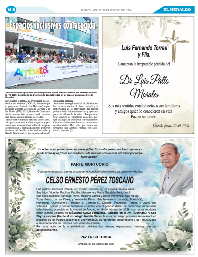 PARTES MORTUORIOS Y OBITUARIOS 20 DE FEBRERO DE 2026 20 febrero, 202620 febrero, 2026 El Heraldo Partes Mortuorios
