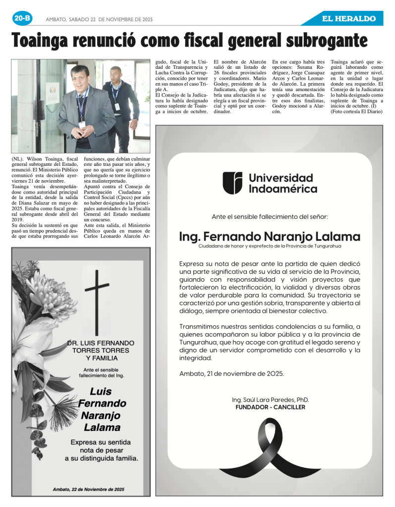 PARTES MORTUORIOS Y OBITUARIOS 22 DE NOVIEMBRE DE 2025 22 noviembre, 202522 noviembre, 2025 El Heraldo Partes Mortuorios