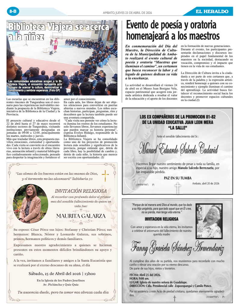 PARTES MORTUORIOS Y OBITUARIOS 23 DE ABRIL DE 2026 23 abril, 202623 abril, 2026 El Heraldo Partes Mortuorios