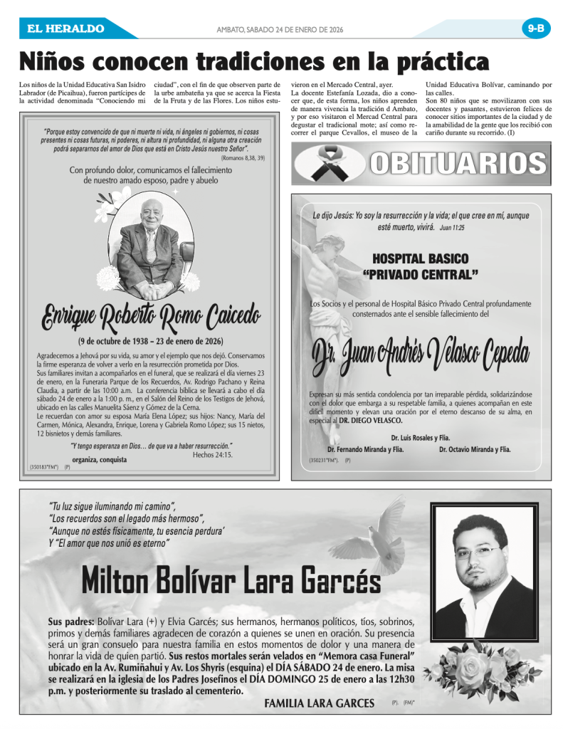 PARTES MORTUORIOS Y OBITUARIOS 24 DE ENERO DE 2026 24 enero, 202624 enero, 2026 El Heraldo Partes Mortuorios