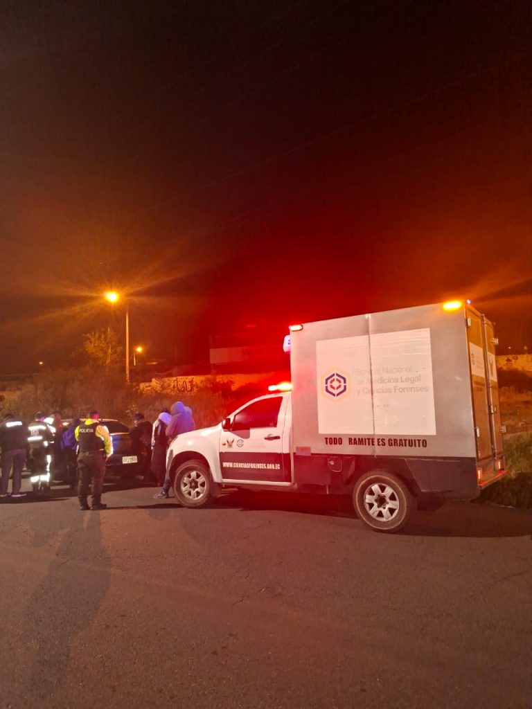 Cerca de las 23:30 horas, la unidad móvil «Santa Rosa» de la Policía Nacional acordonó el área frente al centro educativo. El resplandor de las balizas iluminó una escena de dolor bajo el cielo nocturno de Tungurahua.