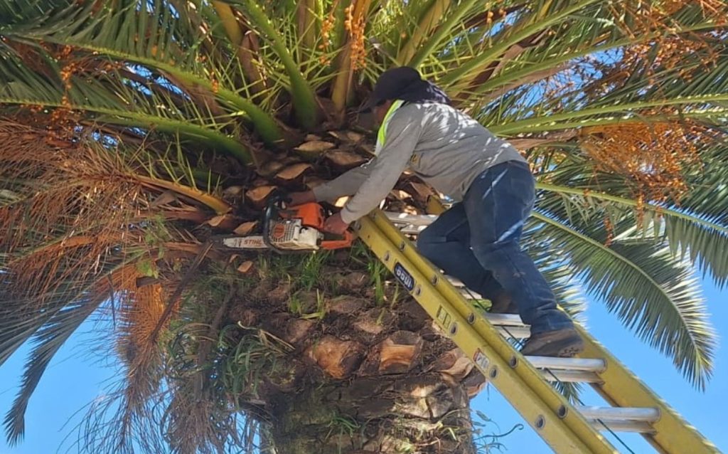 La labor de poda de las palmeras no es solo superficial, sino que implica una intervención técnica para garantizar la adecuada conservación de la especie vegetal. Este mantenimiento es crucial para el desarrollo saludable de las plantas y para prevenir futuros problemas estructurales o de visibilidad.