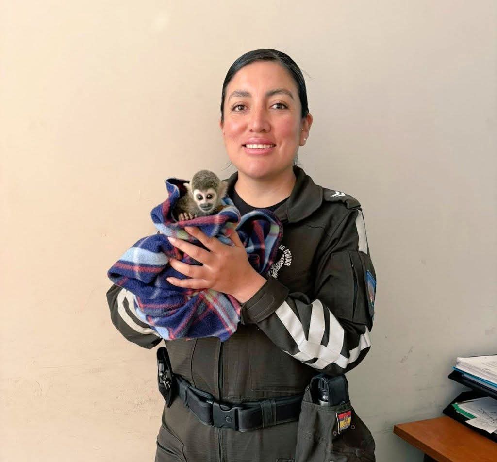La Unidad de Protección del Medio Ambiente (UPMA) de la Policía Nacional logró el rescate de un mono ardilla (Saimiri oerstedii) en Ambato, en una acción que refuerza el compromiso institucional con la preservación de la fauna silvestre.