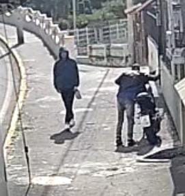 De inmediato, dio aviso a la policía y gracias a la revisión de las cámaras de seguridad de los domicilios cercanos, se observó a dos sujetos vestidos con pantalones negros y chompa azul y negro, habrían empujado y sustraído la motocicleta.