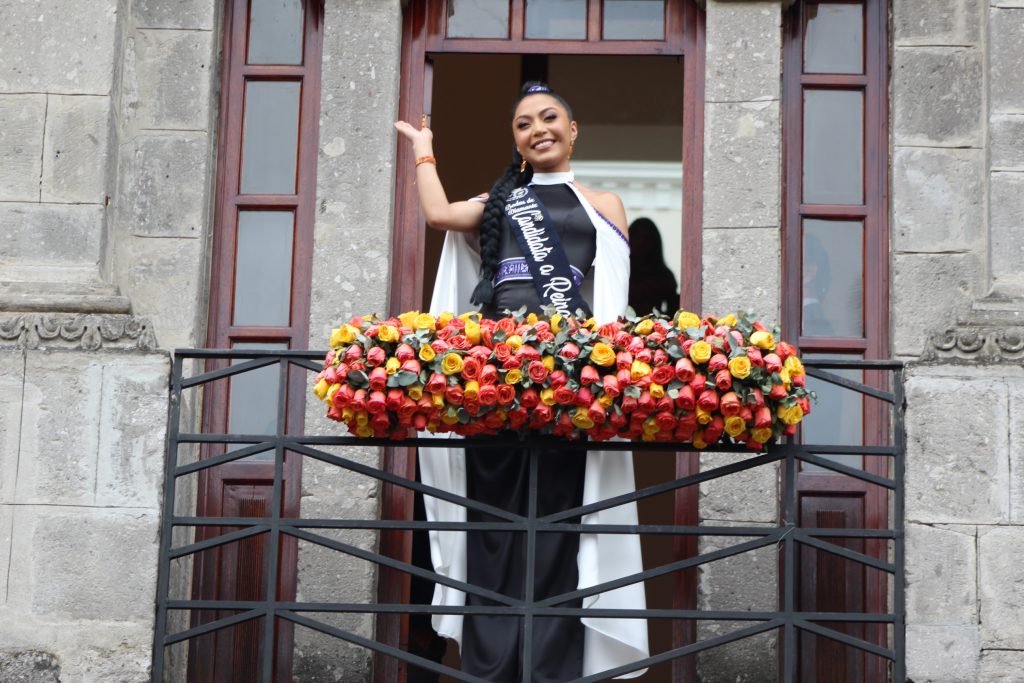 Hacía el Salón de la Ciudad del Municipio de Ambato Centro llegó la candidata a reina de Ambato por la Edición 75 de la Fiesta de la Fruta y de las Flores (FFF) 2026 ‘La Esencia Florece’, Sumak Portero, quien representa a San José de Apatug Alto y a la Cooperativa de Ahorro y Crédito Crecer, ayer en la tarde.