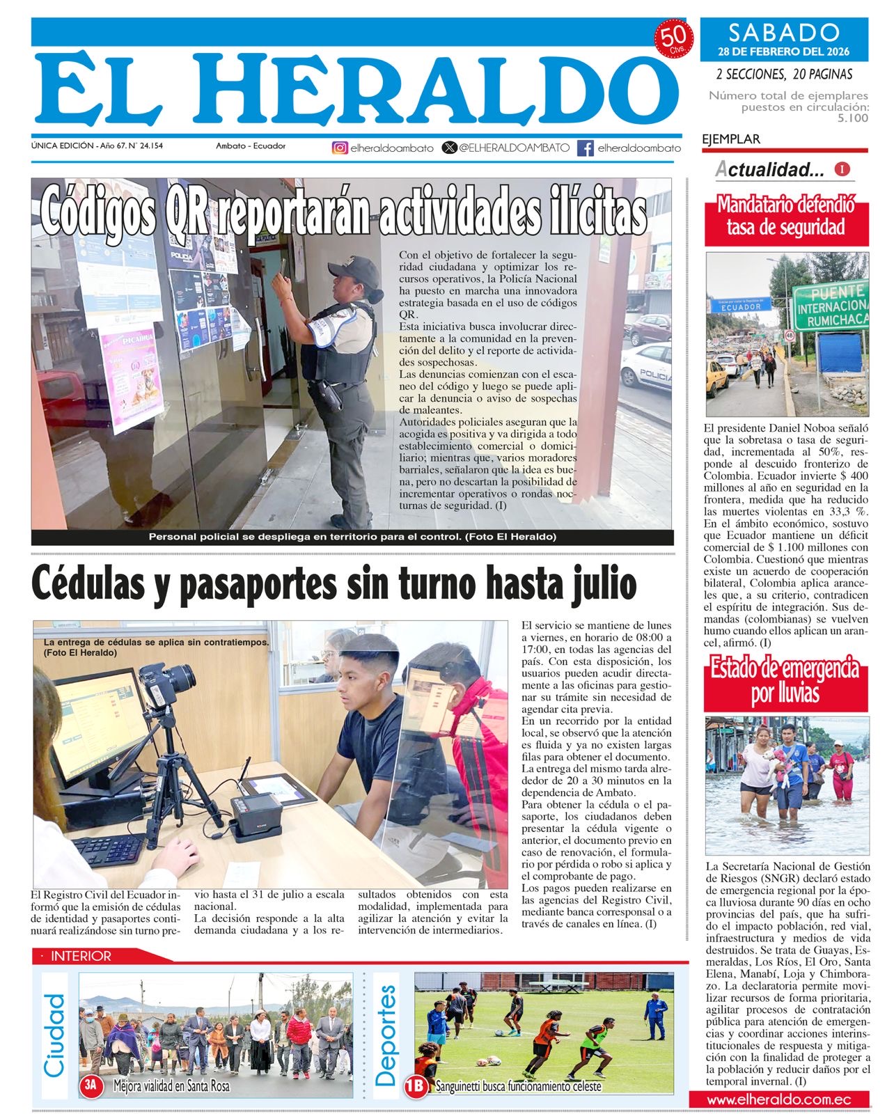El Registro Civil del Ecuador informó que la emisión de cédulas de identidad y pasaportes continuará realizándose sin turno previo hasta el 31 de julio a escala nacional. La decisión […]